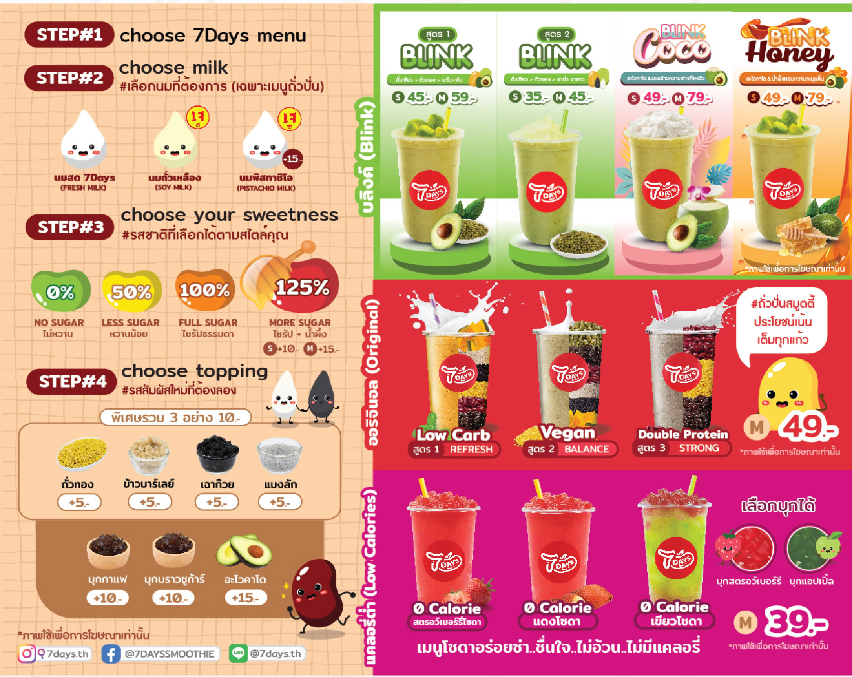 7Days Smoothie น้ำถั่วปั่นแบบ สมูทตี้ สูตรเฉพาะไม่เหมือนใคร ผลิตจากธัญพืชหลายหลายชนิด ที่ให้คุณประโยชน์ต่อสุขภาพผู้บริโภค เลือกสรรวัตถุดิบคุณภาพ สดใหม่ มาผลิต